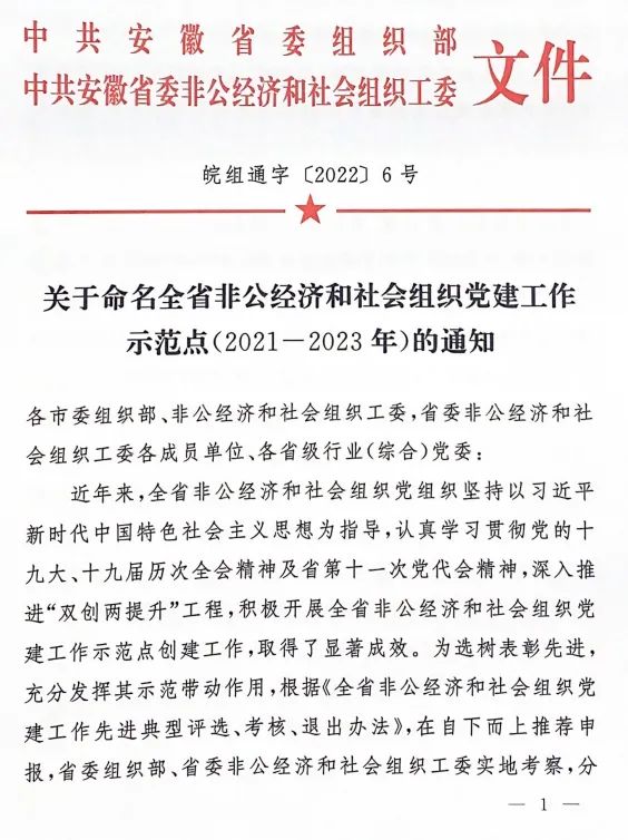 以高質量黨建引領醫院高質量發展——壹号pg娱乐电子游戏-壹号电子娱乐app下载体育總院榮獲安徽省非公經經濟和社會組織黨壹号pg娱乐电子游戏-壹号电子娱乐app下载作示範點稱号