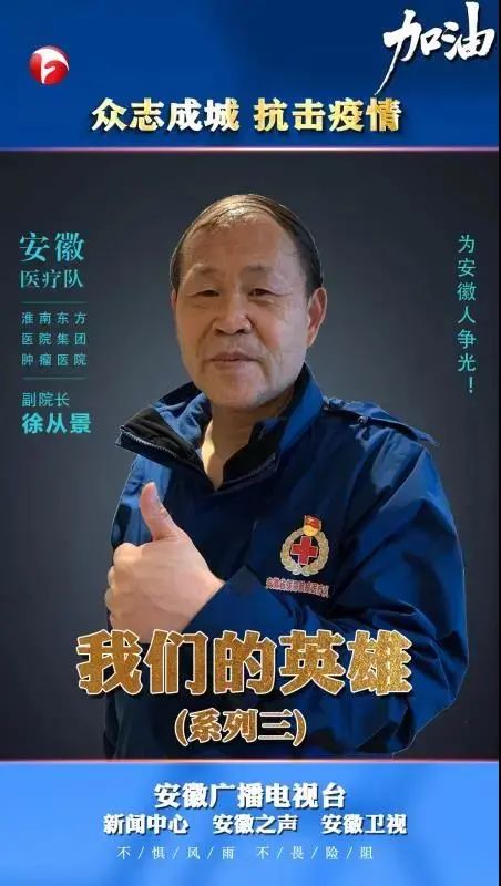 “疫情不退我們不退!我們第一批來,請戰最後一批走!”2月底,在淮南首批支援湖北醫療隊援漢1個月之際,徐從景院長與首批援助醫療隊戰友們集體請戰,要與病毒奮戰到底。他說:“因為有離不開的醫院,才有回不去的家,我會不辱使命, 繼續堅守崗位,為百姓築起疫情防控的生命防線。”