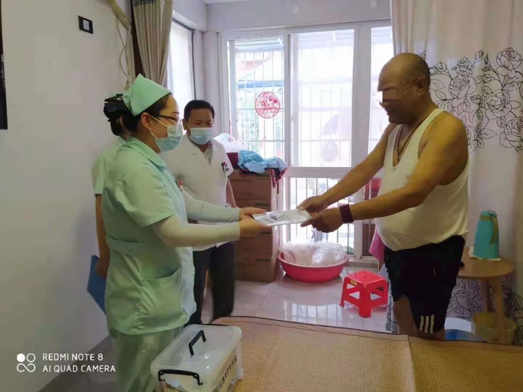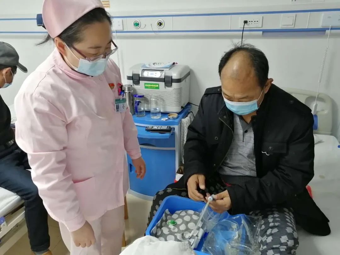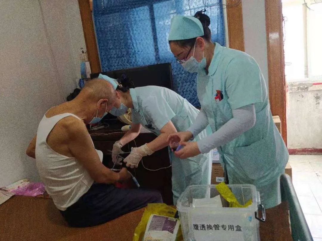 對于腹透患者,每3至6個月要進行腹透短管更換。有一次電話随訪中發現一個腹透患者已經到了更換短管的時間但卻遲遲未來醫院更換,蔡護士便立刻打電話詢問,得知該透析病人由于骨折無法來院更換短管,蔡護士主動找到主任、護士長商量想着幫忙解決,第二天,她與主任、護士長一起親自到患者家中為其換管。換管結束,蔡護士更是反複認真交代病人及家人下一次複查具體時間,臨行時家屬感動的握着她們的手說:“真是太謝謝你們了,讓我們足不出戶,就能享受到三級醫院的好服務!”