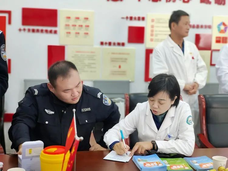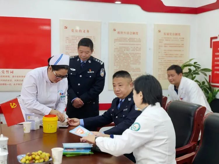 派出所的警務人員超常付出,恪盡職守,日夜堅守在一線執勤崗位。由于連續作戰,部分民警有血壓增高、血糖升高等病症。金年会体育總院心内科及内分泌科的專家們用自己的專業特長,為民警同志們測量血壓、測血糖,還向民警講解了醫療保健知識、日常醫護救助等方面的技能。