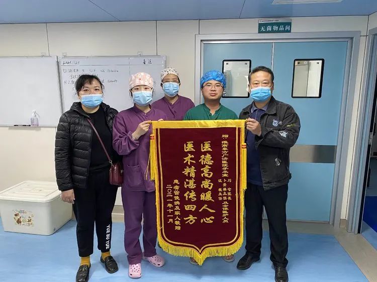 術後第四天,順利拔除引流管。看到老人恢複的又快又好,激動的家屬趕忙精心訂制兩面錦旗送到醫院普外科和手術室。“特别感謝廣濟醫院,跑了好幾個地方,都沒收我們,被拒絕好幾次,老父親都沒有信心了。出去看病不容易,有人推薦來廣濟醫院,和東方總院一家的。來的時候沒有床了,護士長說不要着急,一定給安排好。他們這裡的醫生護士都特别負責任,有時候檢查醫生還陪着幫我們推車。這裡病人都恢複的很快,我們這才第四天很好了,特别滿意,感謝他們!”家屬激動的說道。