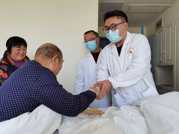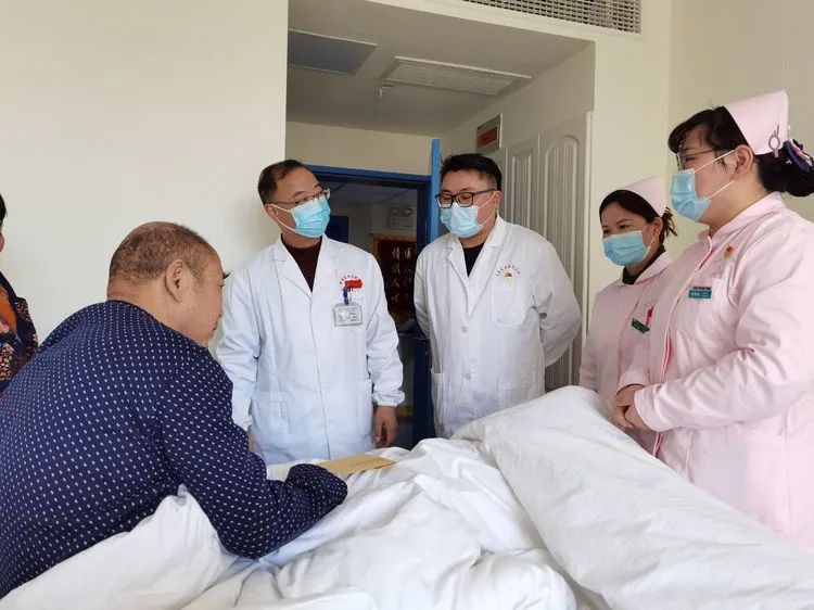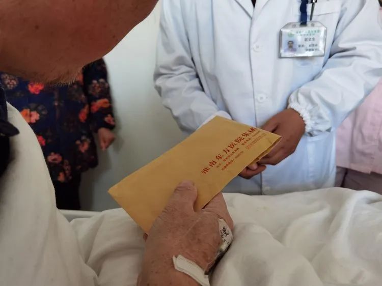 “嚴師傅,好些了嗎?還有哪裡不舒服?”胡書記接着說:“這是我們醫院特困患者救助基金給你包的1000元紅包,您買點營養品補補身體。祝您早日康複!”嚴師傅接過紅包,感激之情溢于言表。