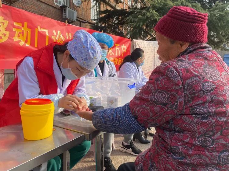 “想着你們,你們就來了”。一位老奶奶拄着拐杖走過來親切的說着。“奶奶你的血糖是餐後5.3,血糖正常,血壓有點高,降壓藥要按時吃,不能自己随便停藥,我們會經常過來給您量血壓,有不舒服的就及時跟醫生說”。黨員楊靜認真的跟老人說着。一位攙扶着老人的阿姨來到了義診現場,這位阿姨激動的說:“你們醫院是真幹實事,走到哪都能看到你們的移動門診,上次在我家樓下,還今天你們又來到這,真是好”。另一位老人的家屬說:“我知道你們的移動門診,老百姓哪需要你們就移動到哪,上街買個菜都能檢查檢查,今天好,我家門口坐着,你們就來了,給你們點贊”。話音剛落,就引得現場笑聲一片,場面溫馨融洽。