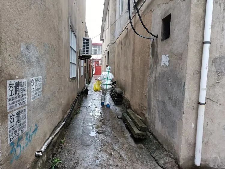 鄉村的道路被雨水淋濕,泥濘不堪,采集員們深一腳淺一腳的腳印見證了他們對抗疫的決心,被淋濕的防護服,打濕的防護面罩,餓着的肚子,都是他們為抗疫做出的貢獻。