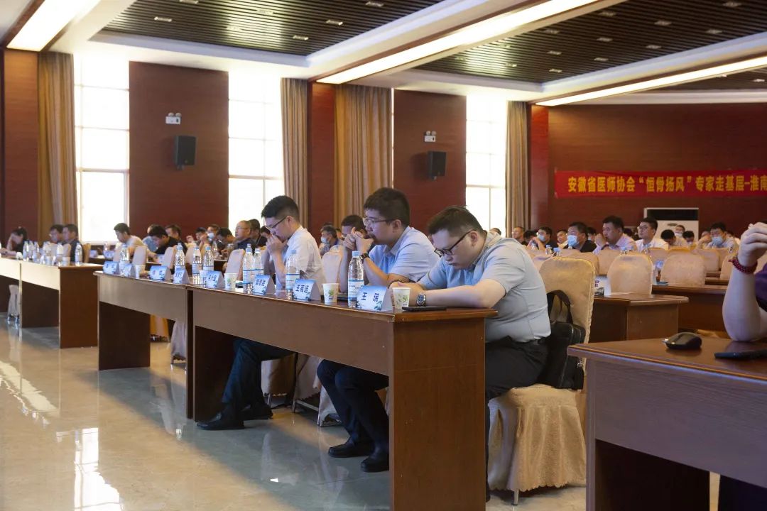 會議非常榮幸邀請到安徽醫科大學第一附屬醫院徐斌教授,中國科學技術大學附屬第一醫院禹德萬教授,中國科學技術大學附屬第一醫院朱晨教授,安徽醫科大學第二附屬醫院許新忠教授,安徽醫科大學第一附屬醫院王瑞教授,安徽醫科大學第一附屬醫院王高遠教授等多名專家,現場進行了精彩紛呈的專題講座,就膝關節骨傷骨病的診斷及關節鏡等治療的最新進展等熱點問題進行了探讨交流,同時分享了日常診療中難得一見的疑難典型病例,參會嘉賓與授課講師進行了熱烈的讨論。會議内容層次豐富、精彩紛呈,來自省内骨科領域的專家紛紛交流心得體驗,大大推動了骨科關節疾病加速康複和規範化診療的長足發展。