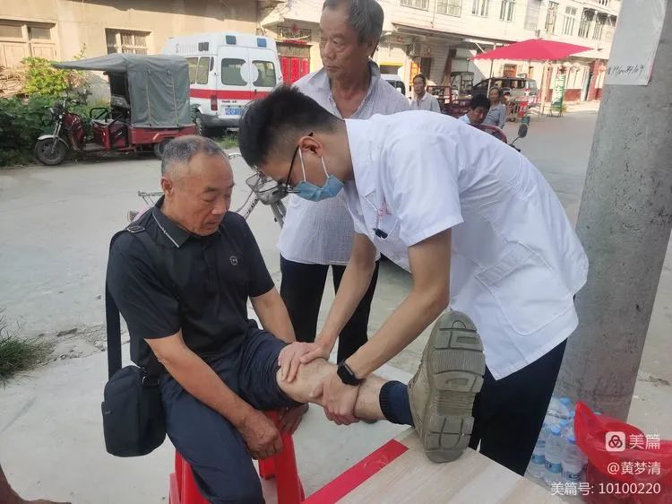 “老人家,您高血糖幾年了?平時吃藥嗎?您的按時吃藥控糖,才能幫助您腿上的傷口愈合”。正在壽縣濟民醫院坐診的東方集團鳳凰醫院骨科醫生袁樹智,一邊為老人檢查膝關節,一邊耐心地詢問。“這幾天感覺有點不舒服,今天來趕集正好看到你們在這裡,我就來測一下。”一旁就診的大媽說。量完血糖,針對檢驗結果,醫護人員給了她相應的治療建議,并耐心告訴她日常生活所要注意有關事項。