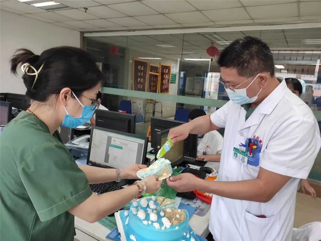2022年8月19日是第五個中國醫師節,敬佑生命、救死扶傷、甘于奉獻、大愛無疆是傳承不朽的醫師精神,為了感謝這群可敬可愛的醫生們,慶祝屬于他們自己的節日,金年会体育董事長江永強一早就帶領相關部門負責人來到各科室,向醫師同道們緻以節日的祝賀并送上精美而甜蜜的大蛋糕。